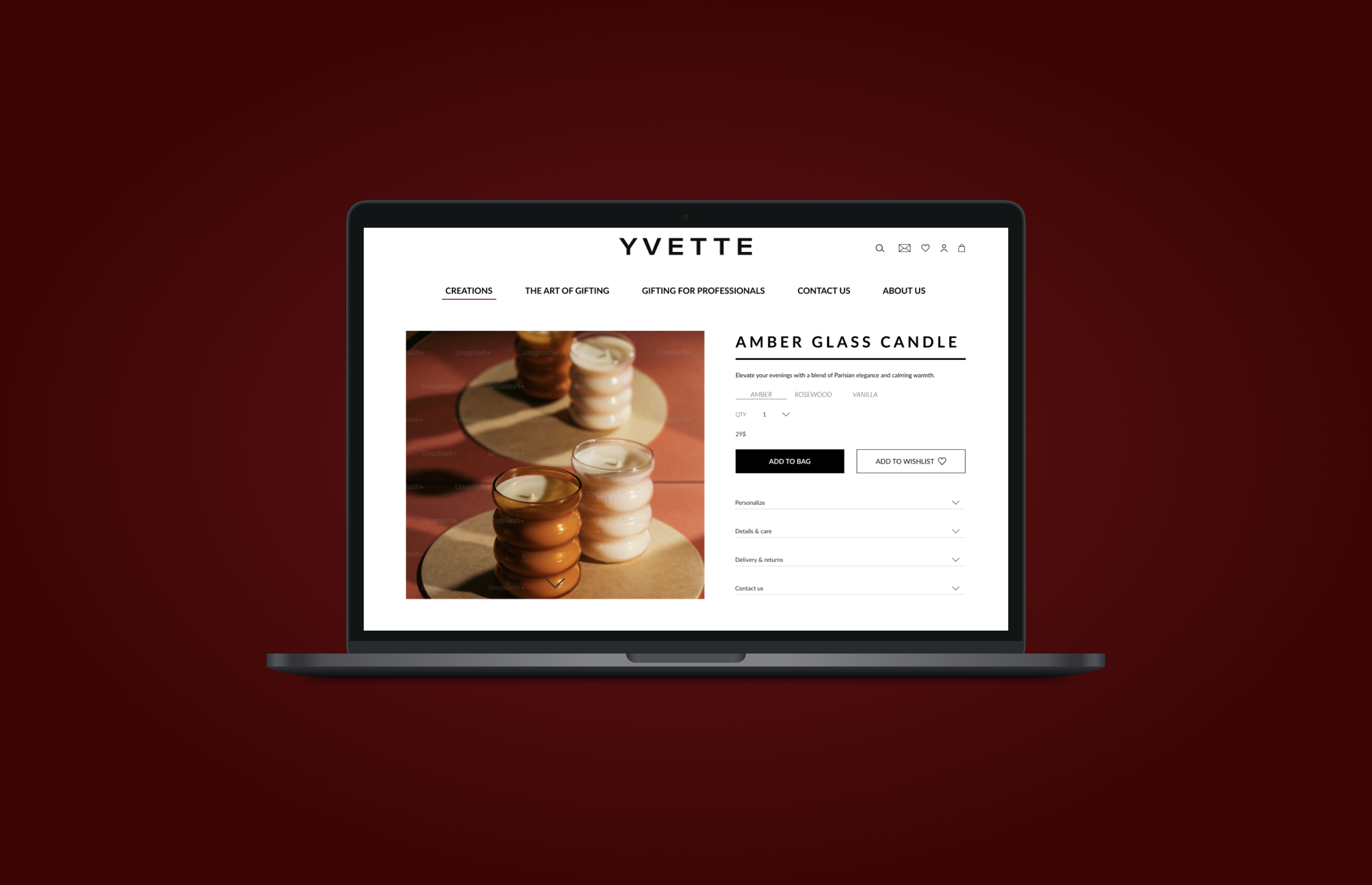 Yvette was an emerging luxury candle brand that needed a digital presence strong enough to reflect the quality, mood, and craftsmanship of its products. The goal was not just to sell candles, but to create an online experience that felt premium, intentional, and visually aligned with the brand’s elevated positioning.